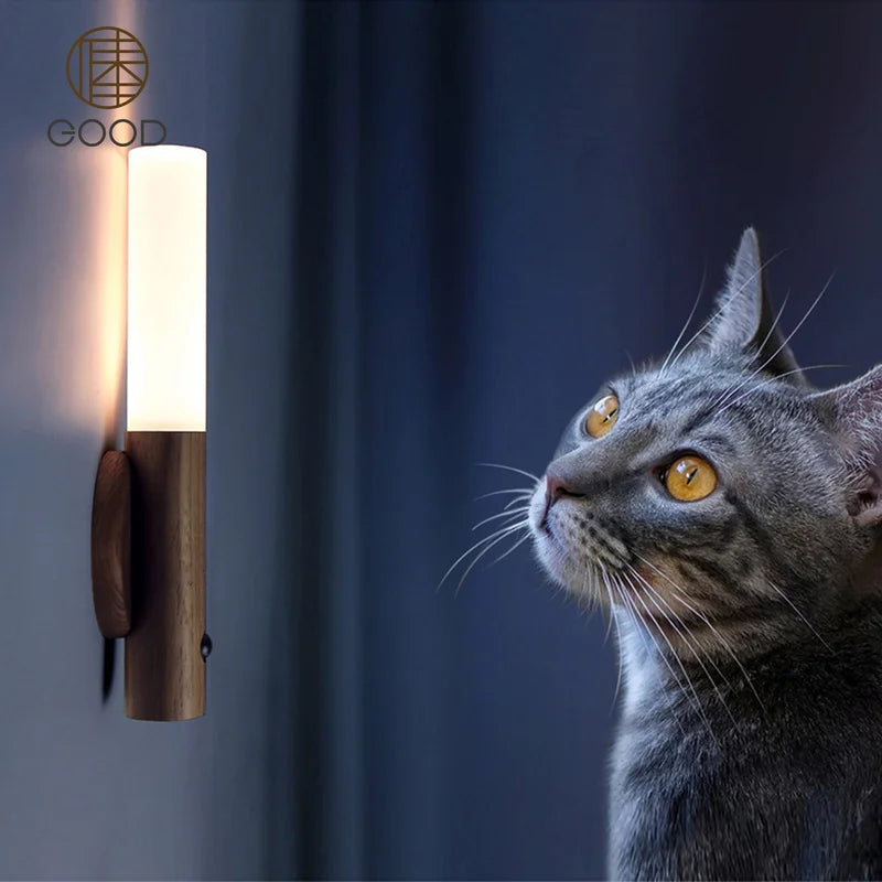 •AUTOMATIC SENSOR: This motion sensor light is built-in with photosensitive sensors and smart switch control. The light will be turned on for 15 seconds when motion is detected in dark within a 10ft distance • DETACHABLE DESIGN FOR EASY MOUNT: Built-in magnets on both light and base allow easy mounting without damaging the wall. You can simply take it off from the base . You can also take it off the wall at any time and use it as a flashlight in your hand or as a bedside lamp on your desk.Flexible and Easy installation,No hard wiring or drilling required,simply stick the base on any smooth surface by back adhesive pad and let the light body absorb on it. • WARM COLOR LED LIGHTS: The warm light-emitting units integrated with frosted acrylic shell effectively relieve pressure and calm your mood. the light effect tends to be soft and warm, which effectively relieves pressure and gives people a comfortable and intimate lighting enjoyment. • Cool natural wood(black walnut wood or White Ash Wood) so each light has a different texture and color, which is also natural wood.This night light has a high-quality acrylic case, which has better heat dissipation performance, and it is much more durable and stylish than cheaper plastic closet light.Wood grain description: Since it is handmade with natural logs, each one has a unique natural grain, so there will be differences in the grain color. • Wide Application : This multifunctional wall lamp can be used as a wall lamp, can also be taken off and held or placed on a desktop, It's a perfect choice to be used in the attic, basement, child's room, closet, drawer, mailbox, medicine cabinet, storage unit, tool shed, vanity mirror, workstation, and anywhere you need it. Portable 360° lighting will bring you a good experience!Product parameter: Product Name: Smart Sensor Light Battery capacity: 500mAh lithium battery Packing size: 80x 43x210mm Product material: solid wood, plexiglass, electronics Light source: LED light Product standard configuration: induction lamp, base, charging cable Light color: 2700K~3000K warm white light Light power: 1W LED IP rating: IP20 Lighting delay: 15 seconds Rated voltage: DC5V 1A Sensing distance: 10 feet Switch type: pyroelectric infrared induction Motion sensor turns LED nightlight on and off automatically Auto shut-off after 15 seconds of no motion detected prevents battery drain Features: The sensor light identifies day and night automatically and will only illuminate at night, when movement is detected and Turns off automatically after 15 seconds if no motion is detected. Smart Motion Sensor Detection -- The Sensor Light has a built-in motion sensor that detects movement from up to 10 ft. away. Perfect for any Location -- This light can be used to light up your hallways, stairs, bathrooms, bedrooms, closets, storage areas and so much more. Wireless, battery powered operation means no installation hassles. No electrician is needed. You can install batteries into the unit, mount the light where you need it. [video width="848" height="512" mp4="https://hhcnewapp.blr1.digitaloceanspaces.com/uploads/2023/11/WhatsApp-Video-2023-11-01-at-3.10.52-PM.mp4"][/video]